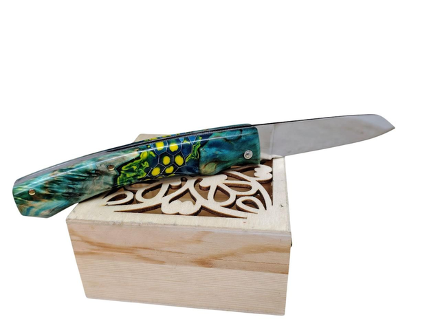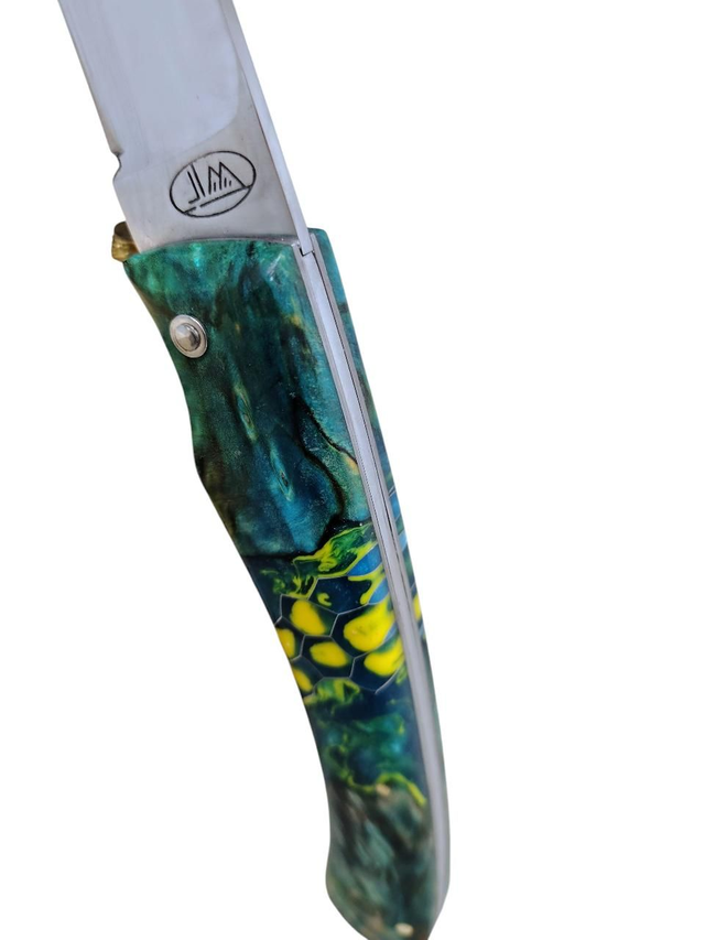 Manche en loupe de marronnier hybride et nid d'abeille résine
