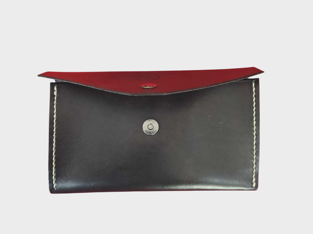 Pochette de ceinture réalisée dans un cuir bovin tannage végétal naturel teinté par mes soins coloris noir et entièrement cousu main par point sellier coloris crème.
