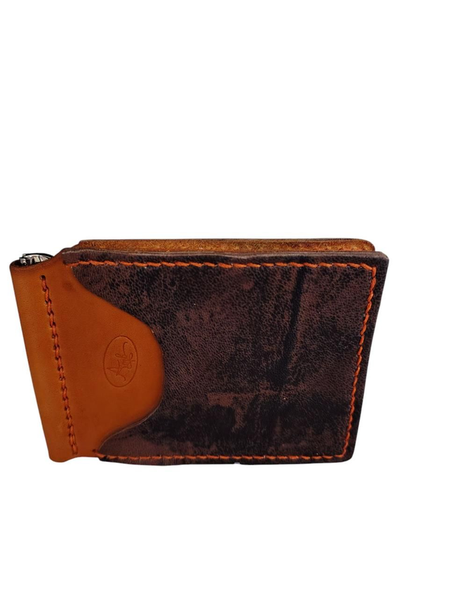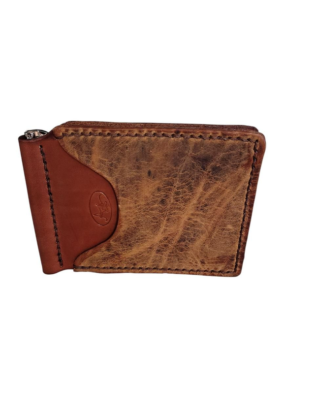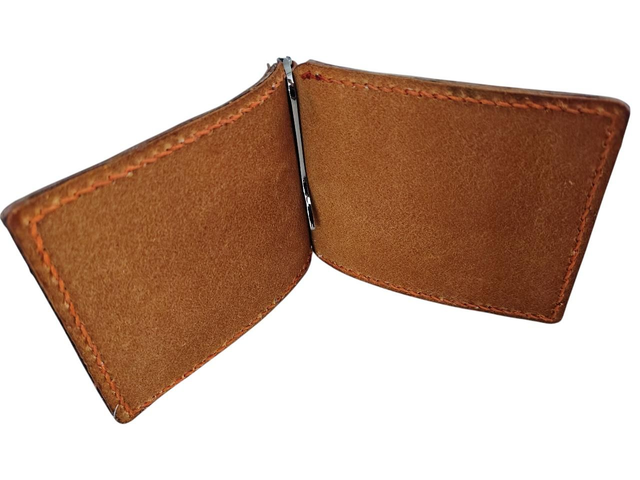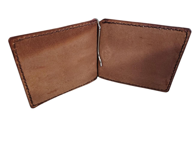 Portefeuille pince à billets réalisé dans un cuir bovin tanné végétal teinté par mes soins